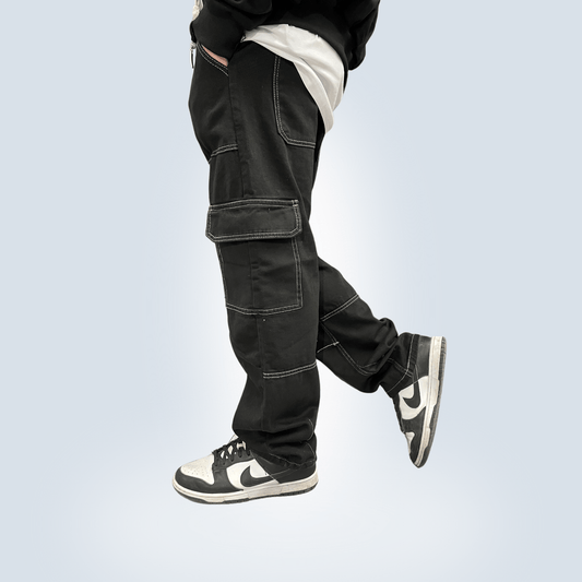 Cargo nero con cuciture a vista Jeans nero cuciture